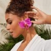 Fashion orchid flower stud earrings