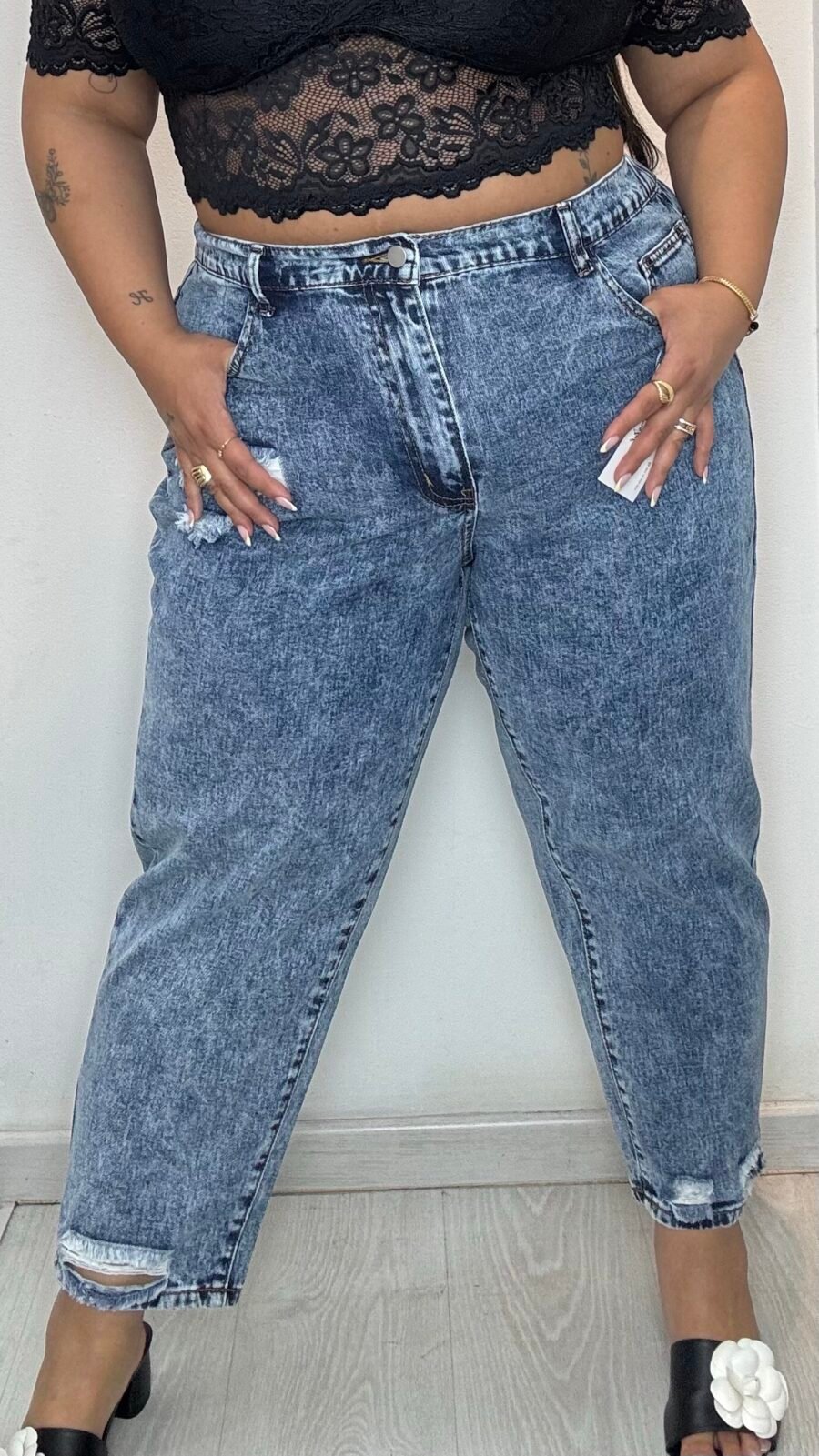 Plus size casual light wash blue carrot jeans